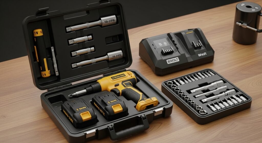 - Modelos a Bateria: Oferecem liberdade de movimento, sem depender de tomadas. Muitos kits vêm com parafusadeira furadeira bivolt, que pode ser carregada em qualquer tensão.